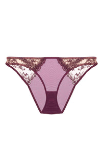 Cassia is back and she's in the colourway of the season - decadent Wine. Featuring delicate custom embroidery, this wine mesh brief is a detailed dream with edge.