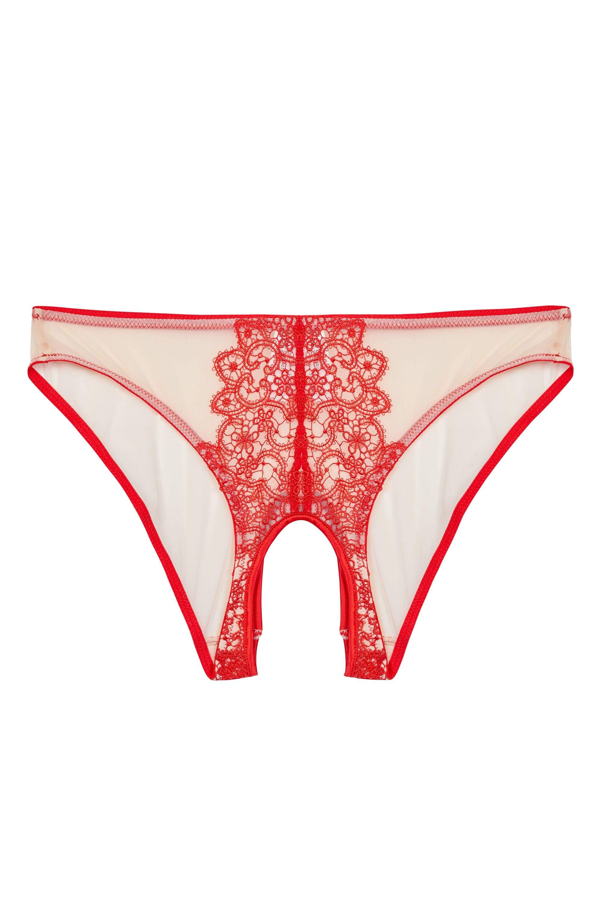 Turn heads in our Anaise Red Ouvert Brief. These racy red briefs are lined with nude mesh and finished with red lace. For added naughtiness, the ouvert brief features an opening at the front. Match with our Balcony Bra for the full flirty finish.